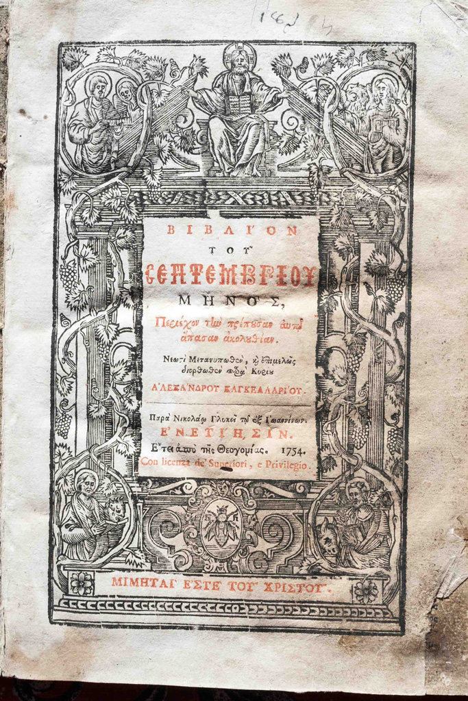 Βιβλίον τοῦ Σεπτεμβρίου μηνὸς : περιέχον τὴν πρέπουσαν αὐτῷ ἅπασαν Ἀκολουθίαν