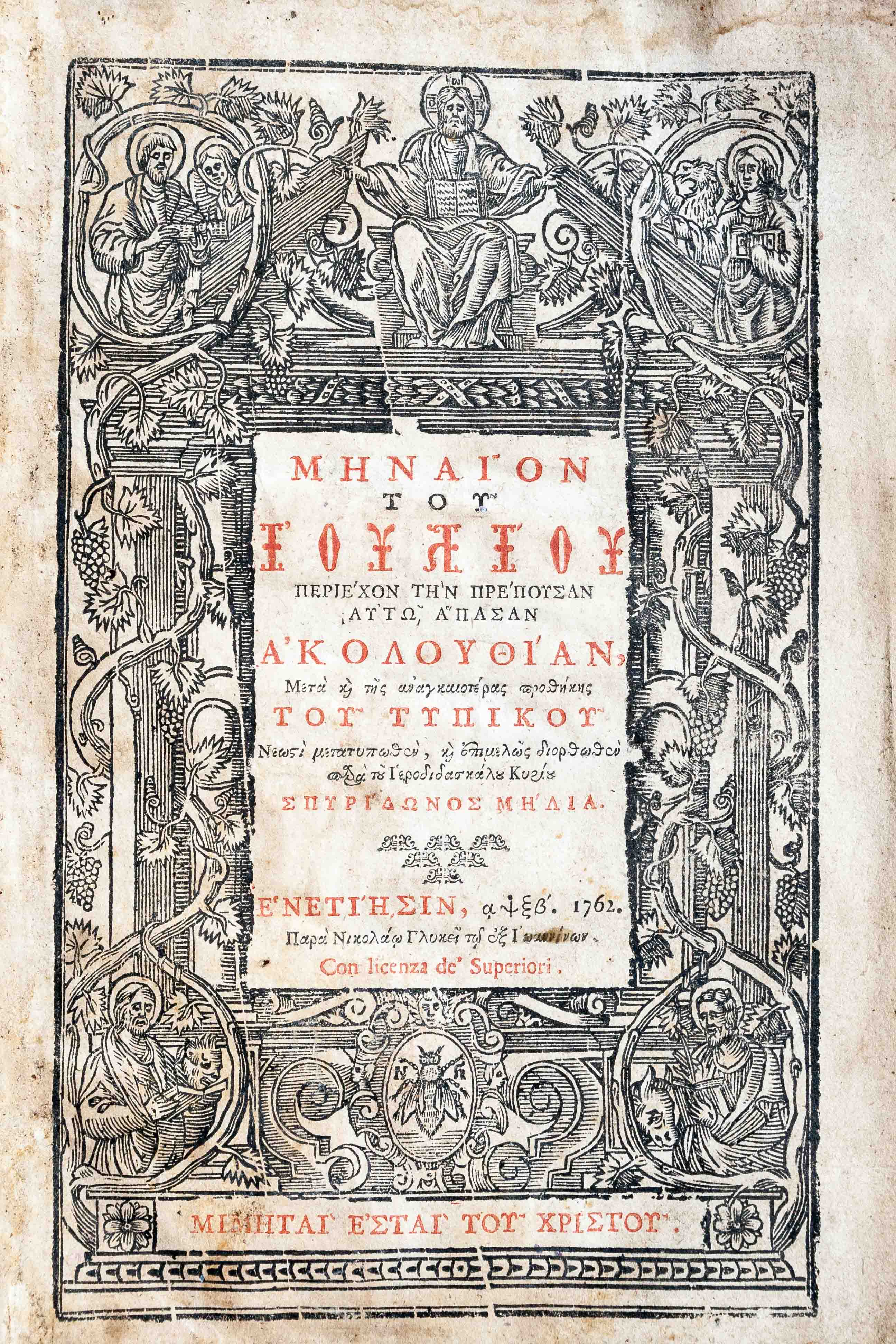 Μηναῖον τοῦ Ἰουλίου : περιέχον τὴν πρέπουσαν αὐτῷ ἅπασαν Ἀκολουθίαν μετὰ καὶ τῆς ἀναγκαιοτέρας προσθήκης τοῦ Τυπικοῦ