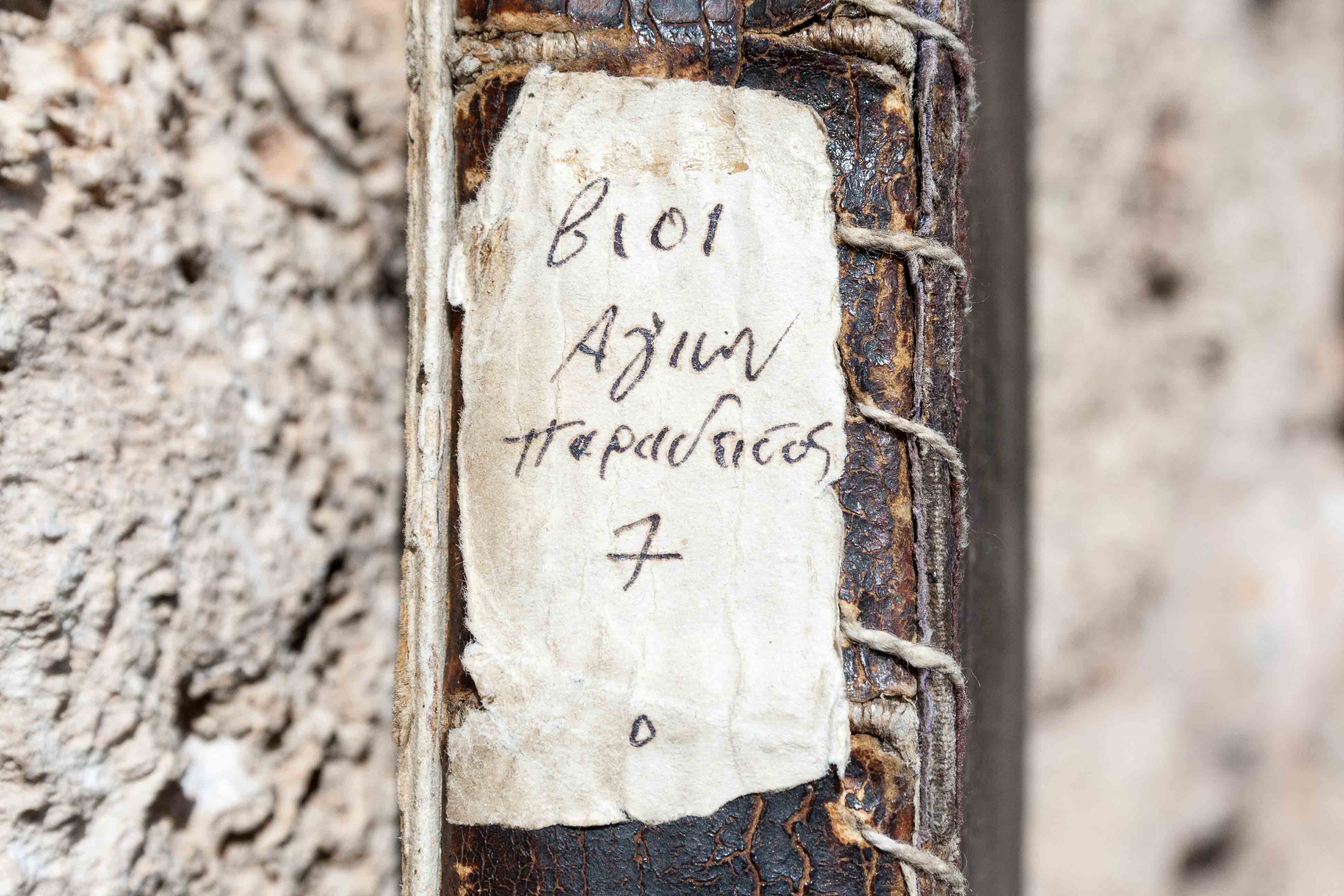 Abstract: Η στάχωση αποτελείται από πινακίδες χαρτονιού με δερμάτινη επικάλυψη. Στην αρχή χειρόγραφη αποκατάσταση λέξεων (φωτ. 5323). Λίγες ενθυμήσεις στα παράφυλλα της αρχής (φωτ. 5320, 5321). Στο verso της σ.τ.: υπάρχει εμού Προκοπίου ιερομονάχου (φωτ. 5322). Ενθυμήσεις στα παράφυλλα του τέλους (φωτ. 5325, 5326) και στο verso του οπισθόφυλλου (φωτ. 5327). Στο εσωτ. των σ. χαμηλά: Paradifos (φωτ. 5324). Στη ράχη σε πρόχειρο χαρτί: βιοι Αγιων Παραδεισος 7 (φωτ. 5319). Αποτελεί μέρος (εγγραφή 23) της πτυχιακής εργασίας Τα παλαίτυπα της Ιεράς Μονής Τιμίου Προδρόμου Βεροίας, της Ευθυμίας Αθανασιάδου, φοιτήτριας του Τμήματος Βιβλιοθηκονομίας και Συστημάτων Πληροφόρησης ΑΤΕΙΘ.
