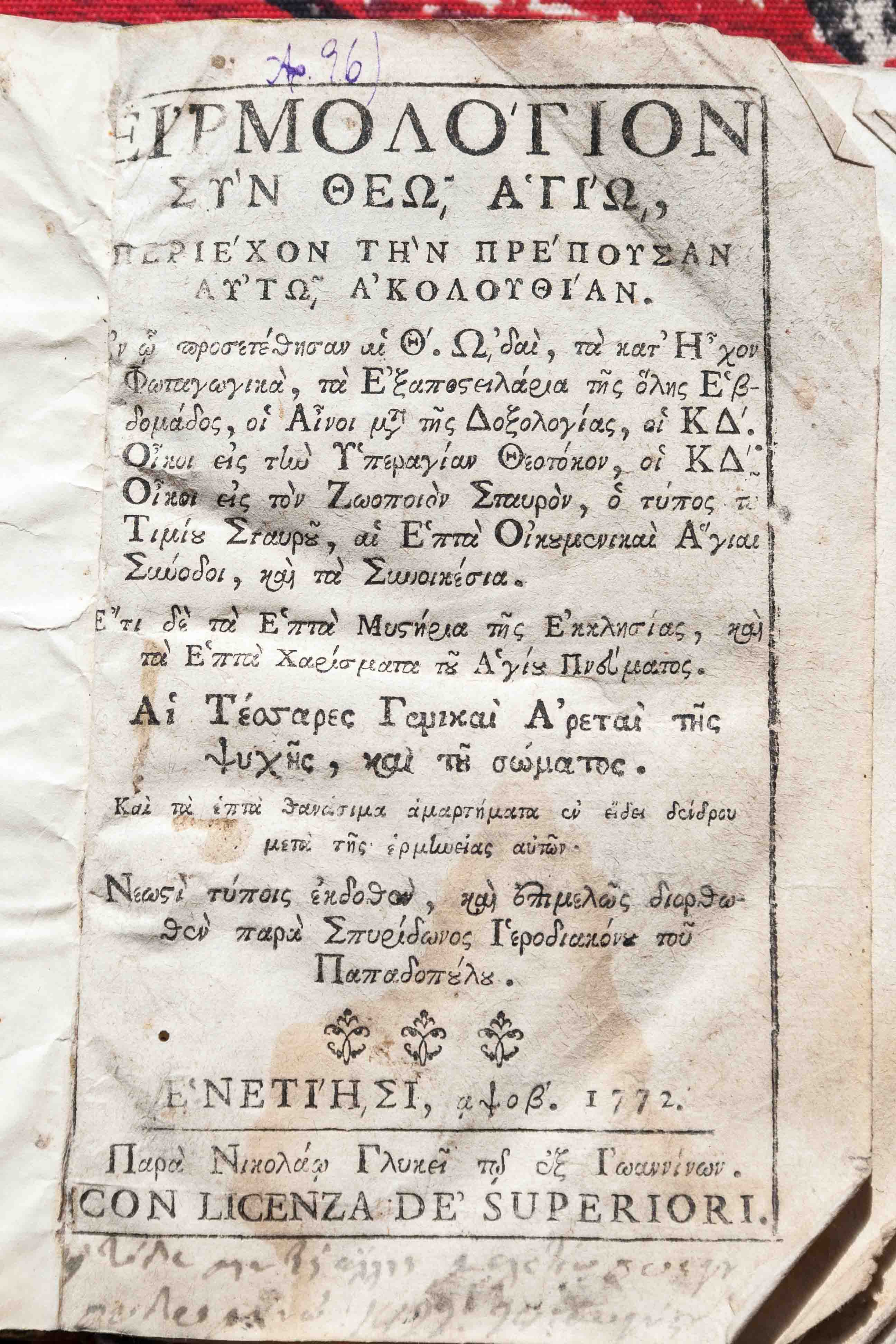 | Description: | Παλαίτυπα--Ιερά Μονή Τιμίου Προδρόμου, 1772 |