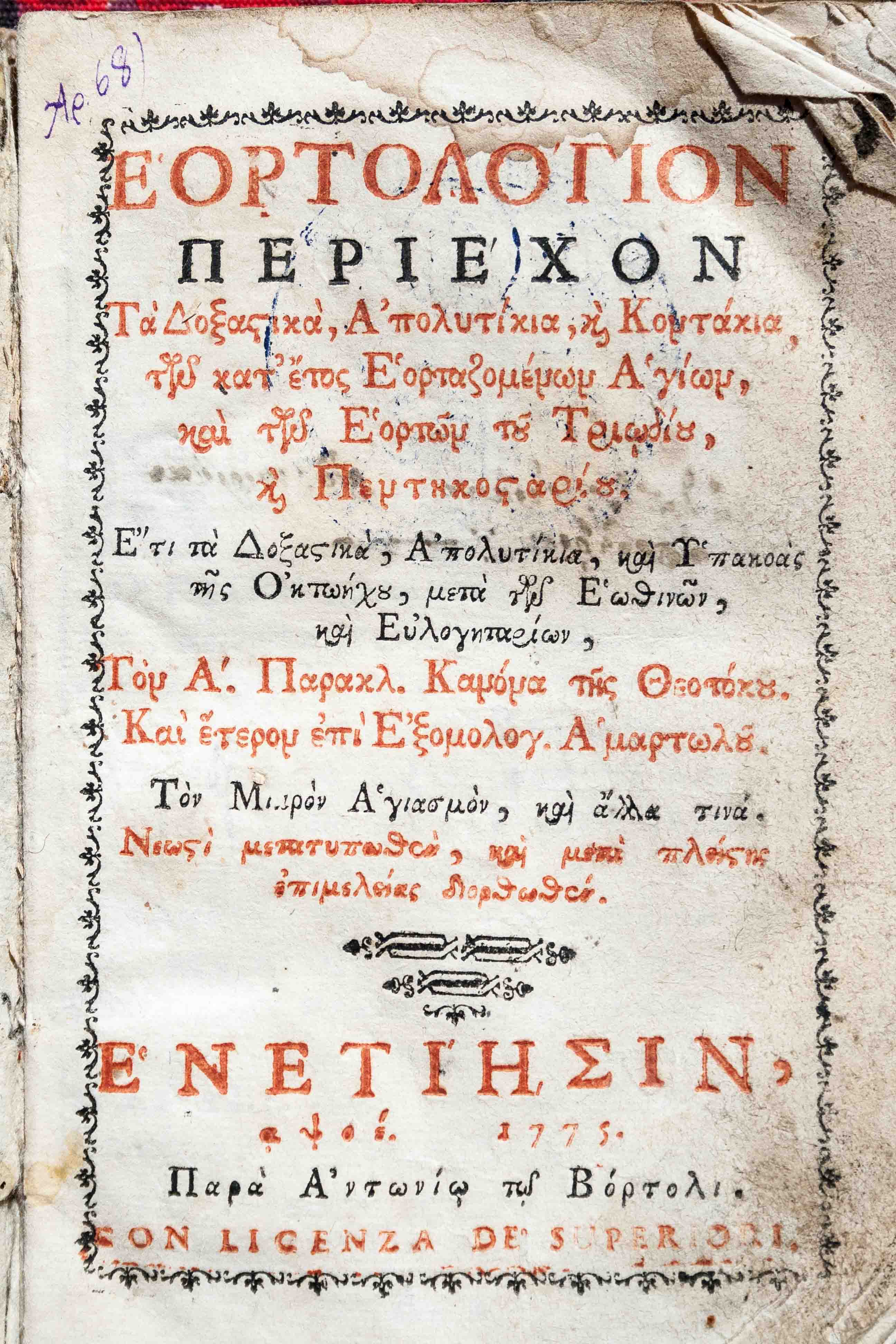 | Publisher: | Παρὰ Ἀντωνίῳ τῷ Βόρτολι |