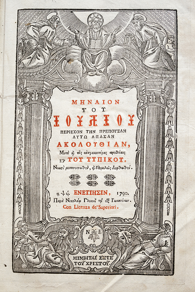 Μηναῖον τοῦ Ἰουλίου : περιέχον τὴν πρέπουσαν αὐτῷ ἅπασαν Ἀκολουθίαν μετὰ καὶ τῆς ἀναγκαιοτέρας προσθήκης τοῦ Τυπικοῦ