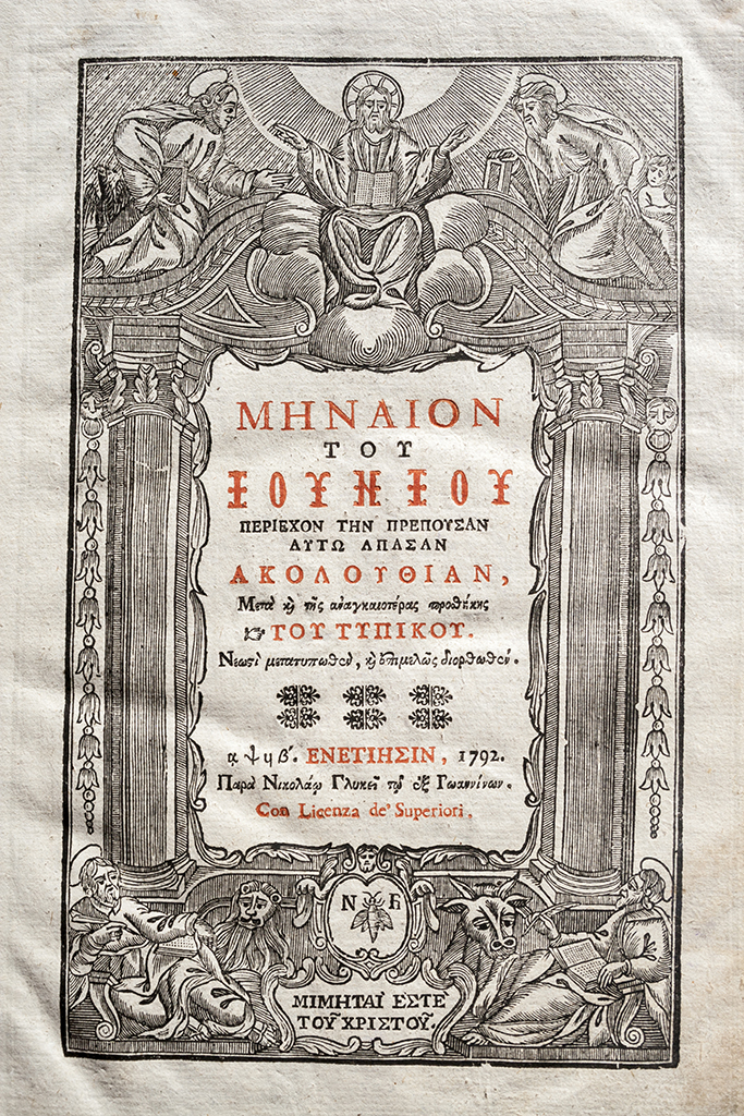 Μηναῖον τοῦ Ἰουνίου : περιέχον τὴν πρέπουσαν αὐτῷ ἅπασαν Ἀκολουθίαν μετὰ καὶ τῆς ἀναγκαιοτέρας προσθήκης τοῦ Τυπικοῦ