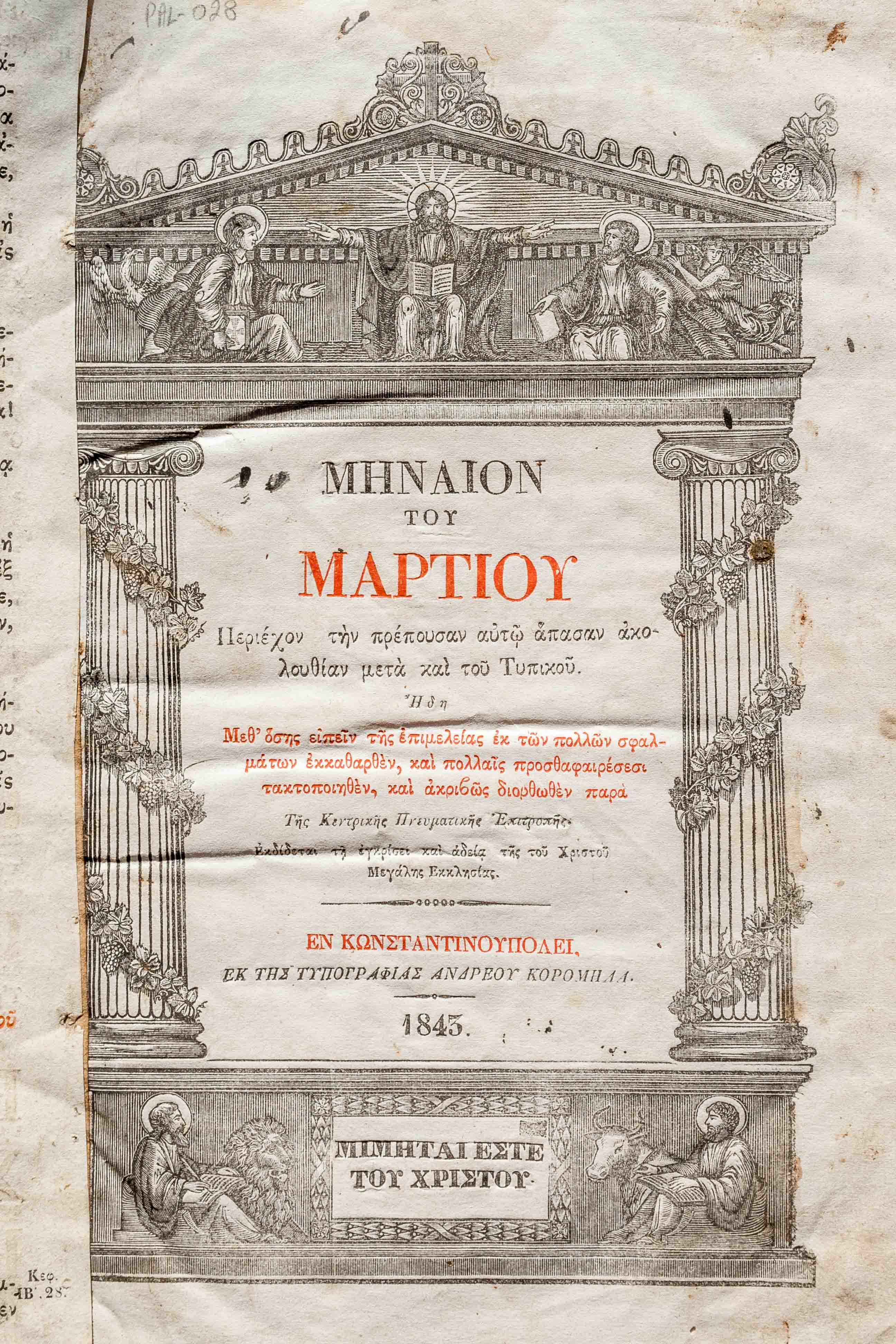 Μηναῖον τοῦ Μαρτίου : περιέχον τὴν πρέπουσαν αὐτῷ ἅπασαν Ἀκολουθίαν μετὰ καὶ τοῦ Τυπικοῦ