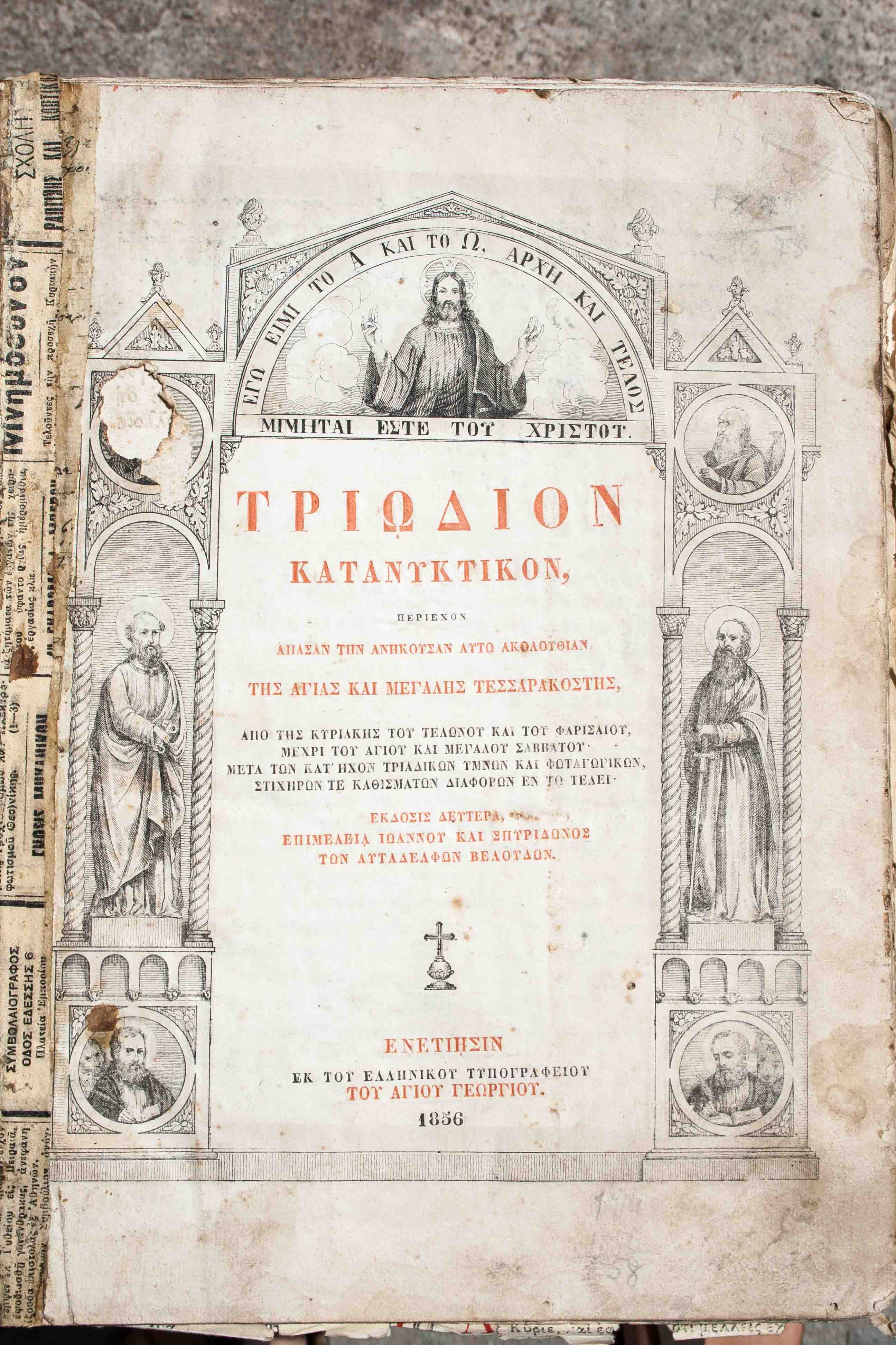 Τριῴδιον κατανυκτικὸν : περιέχον ἅπασαν τὴν ἀνήκουσαν αὐτῷ Ἀκολουθίαν τῆς ἁγίας καὶ μεγάλης Τεσσαρακοστῆςἀπὸ τῆς Κυριακῆς τοῦ Τελώνου καὶ τοῦ Φαρισαίου μέχρι τοῦ Ἁγίου καὶ Μεγάλου Σαββάτου μετὰ τῶν κατ’ ἦχον τριαδικῶν ὔμνων καὶ φωταγωγικῶν, στιχηρῶν τε καθισμάτων διαφόρων ἐν τῷ τέλει.