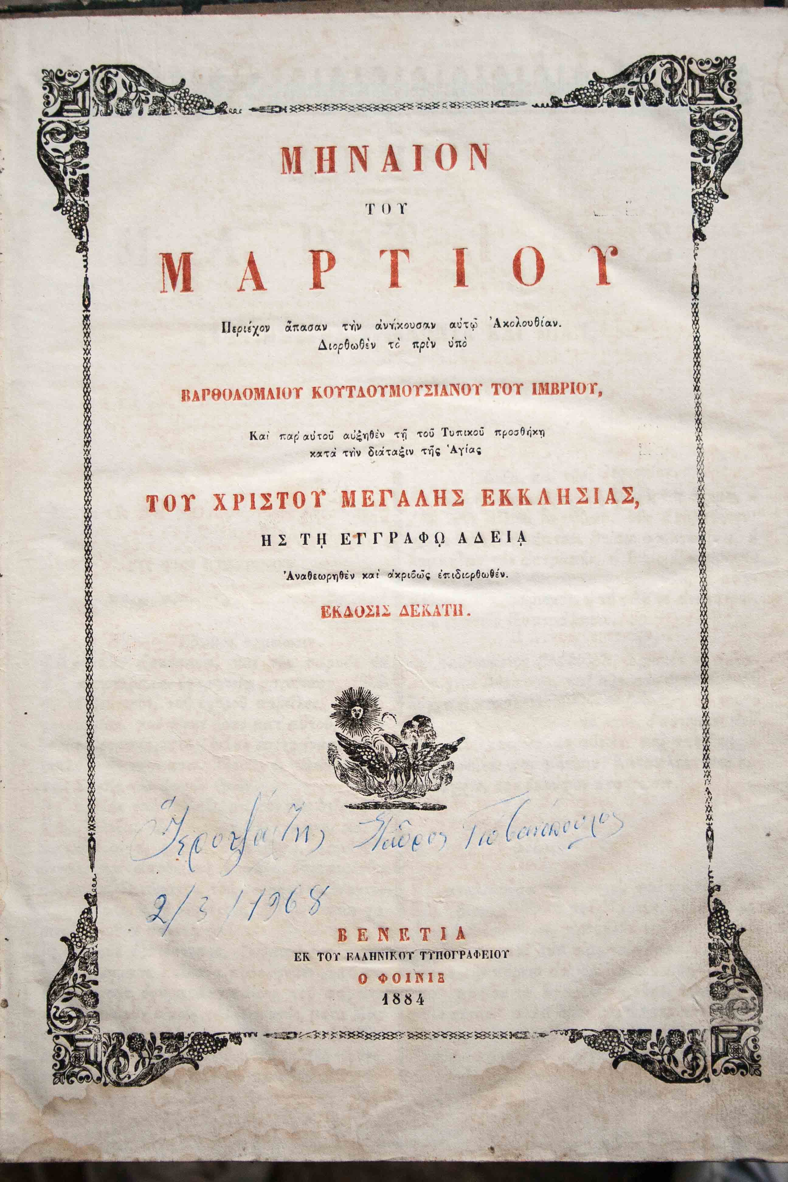 Μηναῖον τοῦ Μαρτίου : περιέχον ἅπασαν τὴν ἀνήκουσαν αὐτῷ Ἀκολουθίαν