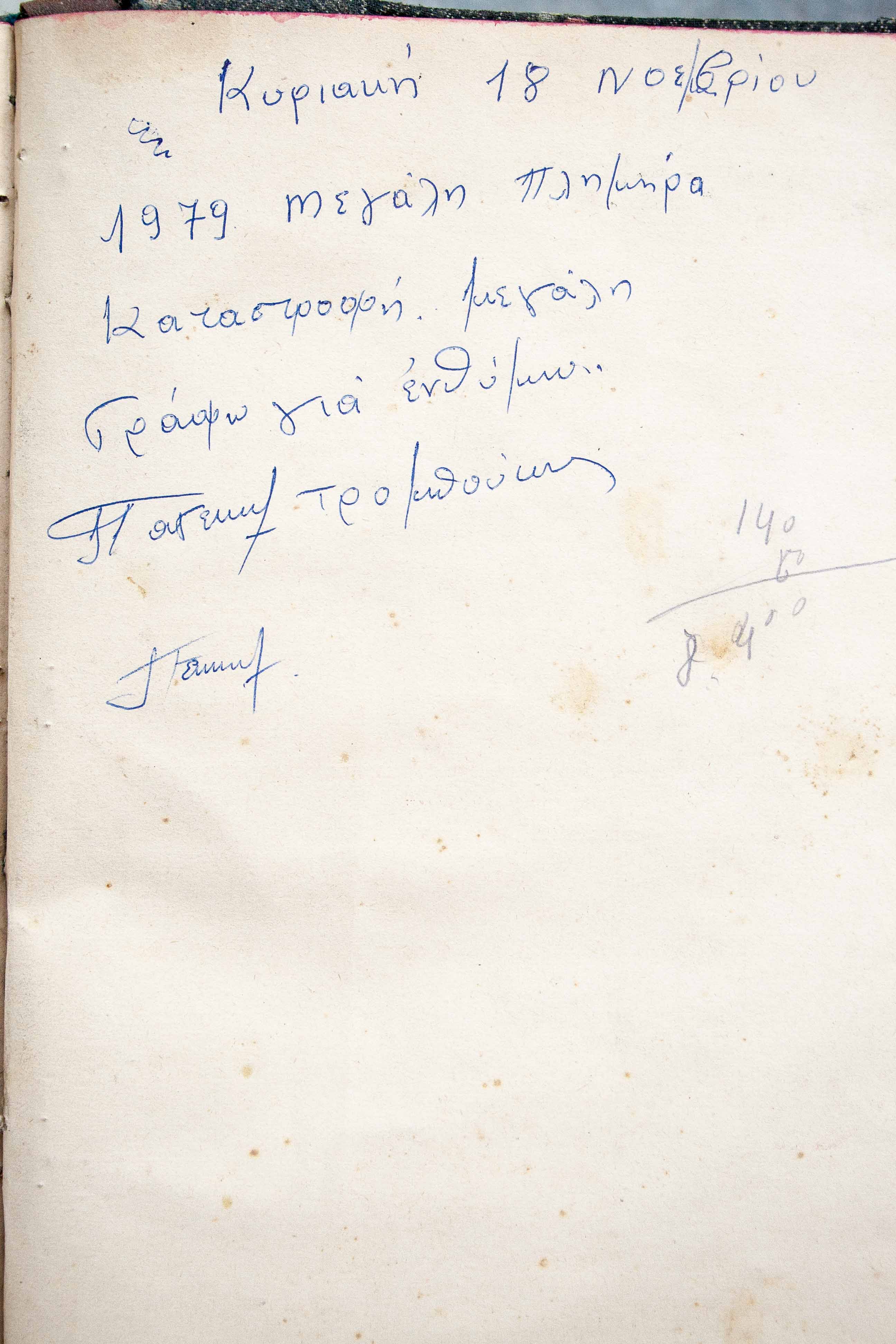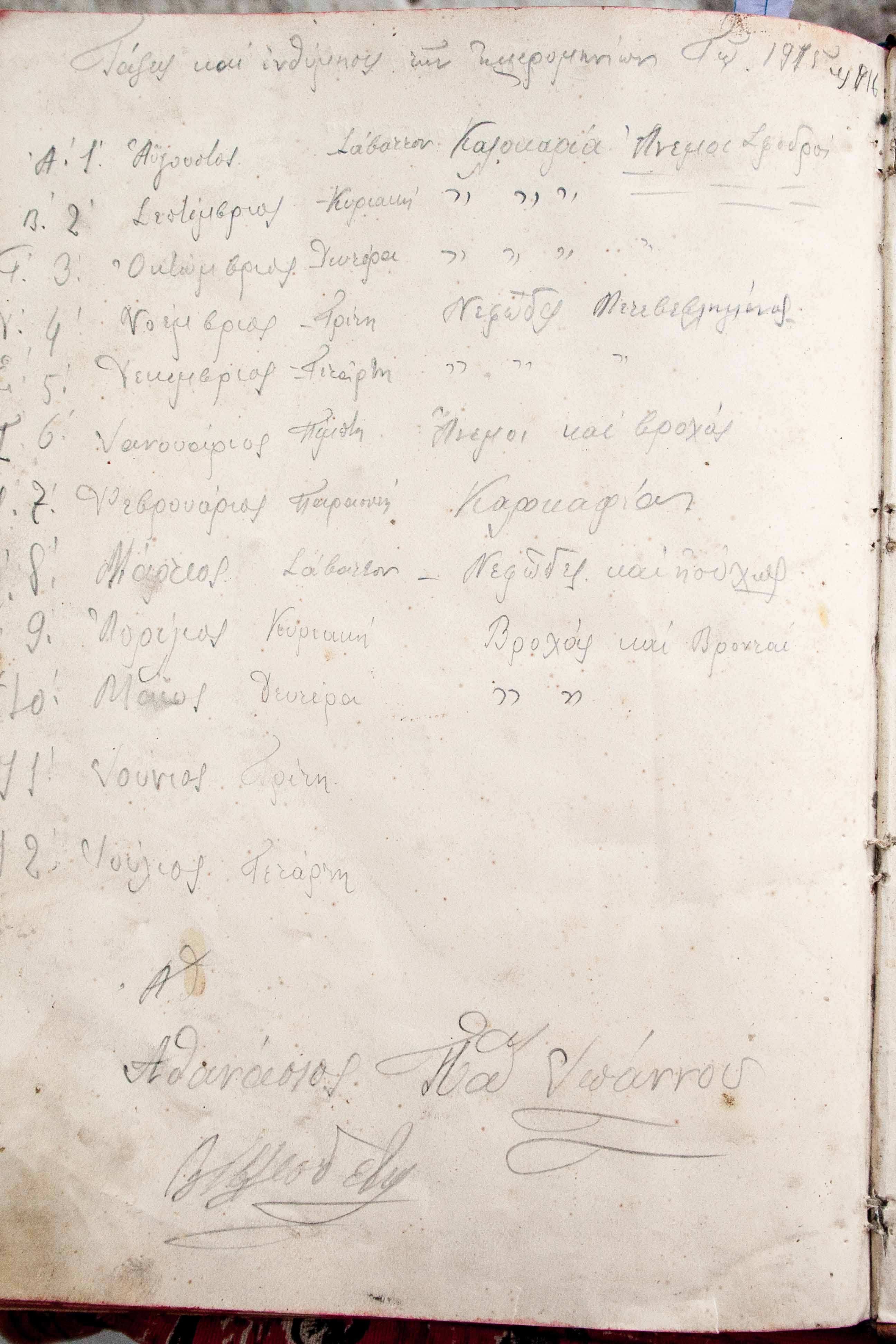 Abstract: Η στάχωση αποτελείται από πινακίδες χαρτονιού με υφασμάτινη επικάλυψη και δέρμα. Έχει γίνει προσπάθεια αποκατάστασης. Έχουν χρησιμοποιηθεί σ. από άλλο βιβλίο Ευαγγελικά διδάγματα, για τη στάχωση στην αρχή. Ενθυμήσεις ενυπόγραφες από εφημέριο Τρομπούκη και από Αθανάσιο Παπαιωάννου με ημερομηνίες 1975, 1976, 1979 για καιρικά φαινόμενα (φωτ. 5054, 5055, 5056). Σχόλιο: σ.τ. (φωτ. 0554). Σχόλιο: δεν φαίνεται να ανήκει στα παλαίτυπα της Μονής. Σχόλιο: η στάχωση ίδια με Μηναίο Δεκεμβρίου 1905. Αποτελεί μέρος (εγγραφή 136) της πτυχιακής εργασίας Τα παλαίτυπα της Ιεράς Μονής Τιμίου Προδρόμου Βεροίας, της Ευθυμίας Αθανασιάδου, φοιτήτριας του Τμήματος Βιβλιοθηκονομίας και Συστημάτων Πληροφόρησης ΑΤΕΙΘ.